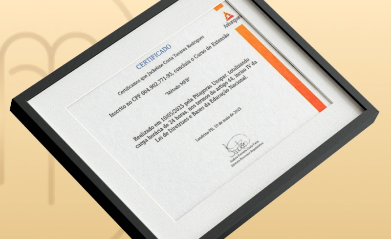 Após a conclusão do MFB, todos os nossos alunos recebem um certificado com validação reconhecida pelo MEC (Ministério da Educação) como um certificado de extensão universitária.